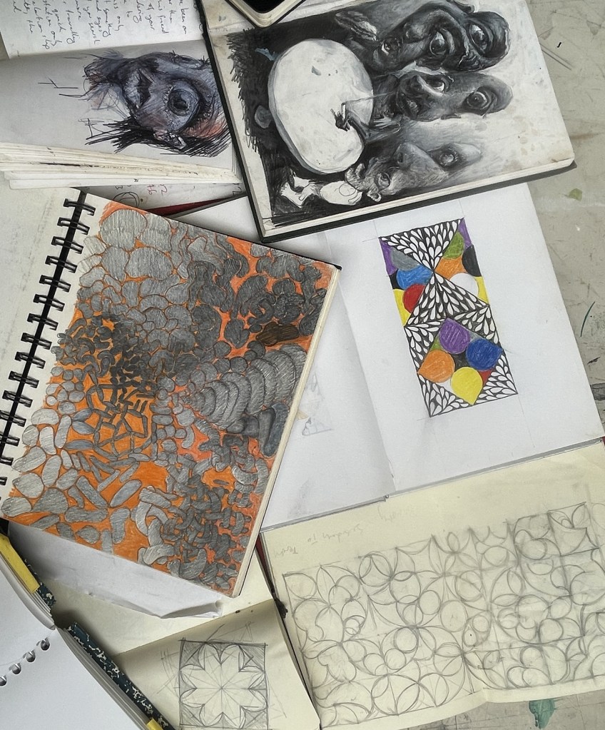 I love sketchbooks. The small size means ideas move quickly. If you have one with you then it becomes a habit to open it up and while you’re thinking you’re drawing or writing. It’s like having a conversation with a professional, who is always available, charges nothing and is always ready to listen. Eventually they give you the answer you need, and you realise you had the answer the whole time, you only needed to find it