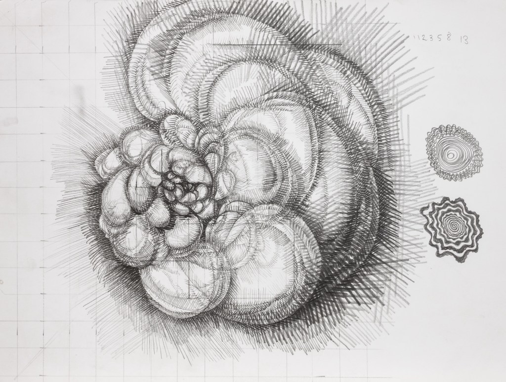 As is often my way when trying something new, I began small. Better to solve the problem on a tiny scale first. I filled sketchbooks with hundreds of forms that grew from the centre outward—organic, rhythmic, like something living. As the work progressed, the circle became less a container and more a suggestion. The forms began to generate their own internal momentum.